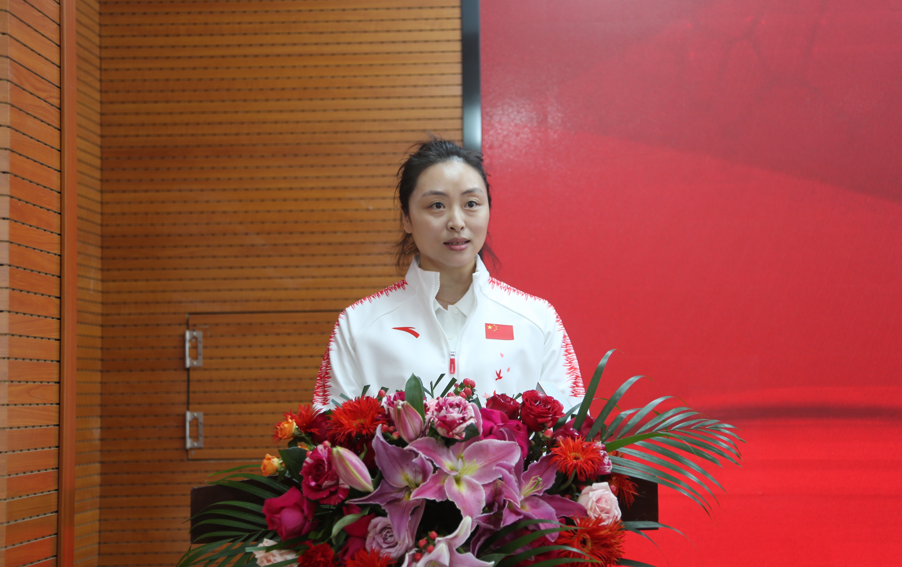 冬季奥林匹克学院教师、中国轮椅冰壶队主教练岳清爽,代表冬残奥会教练员上台发言