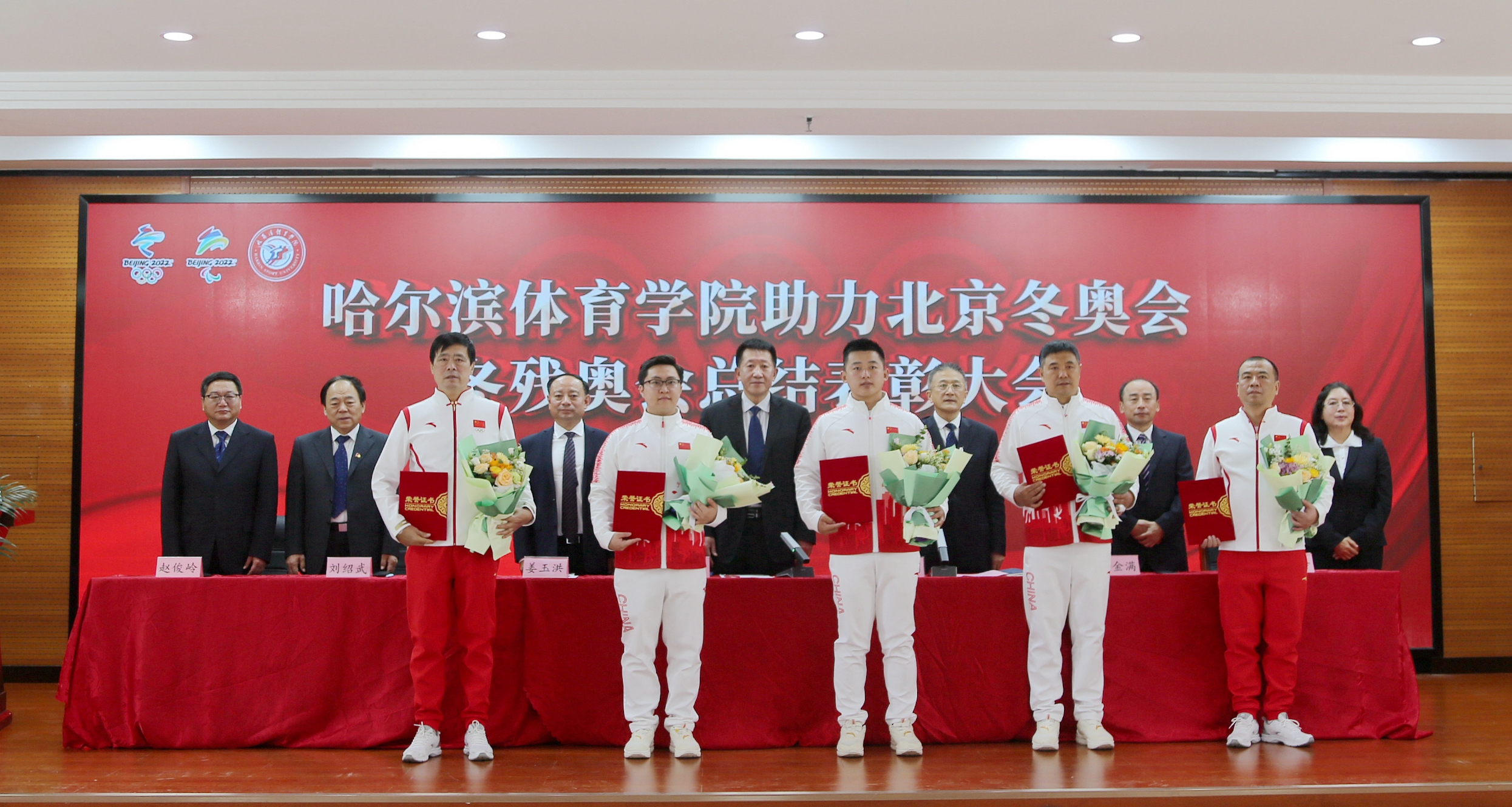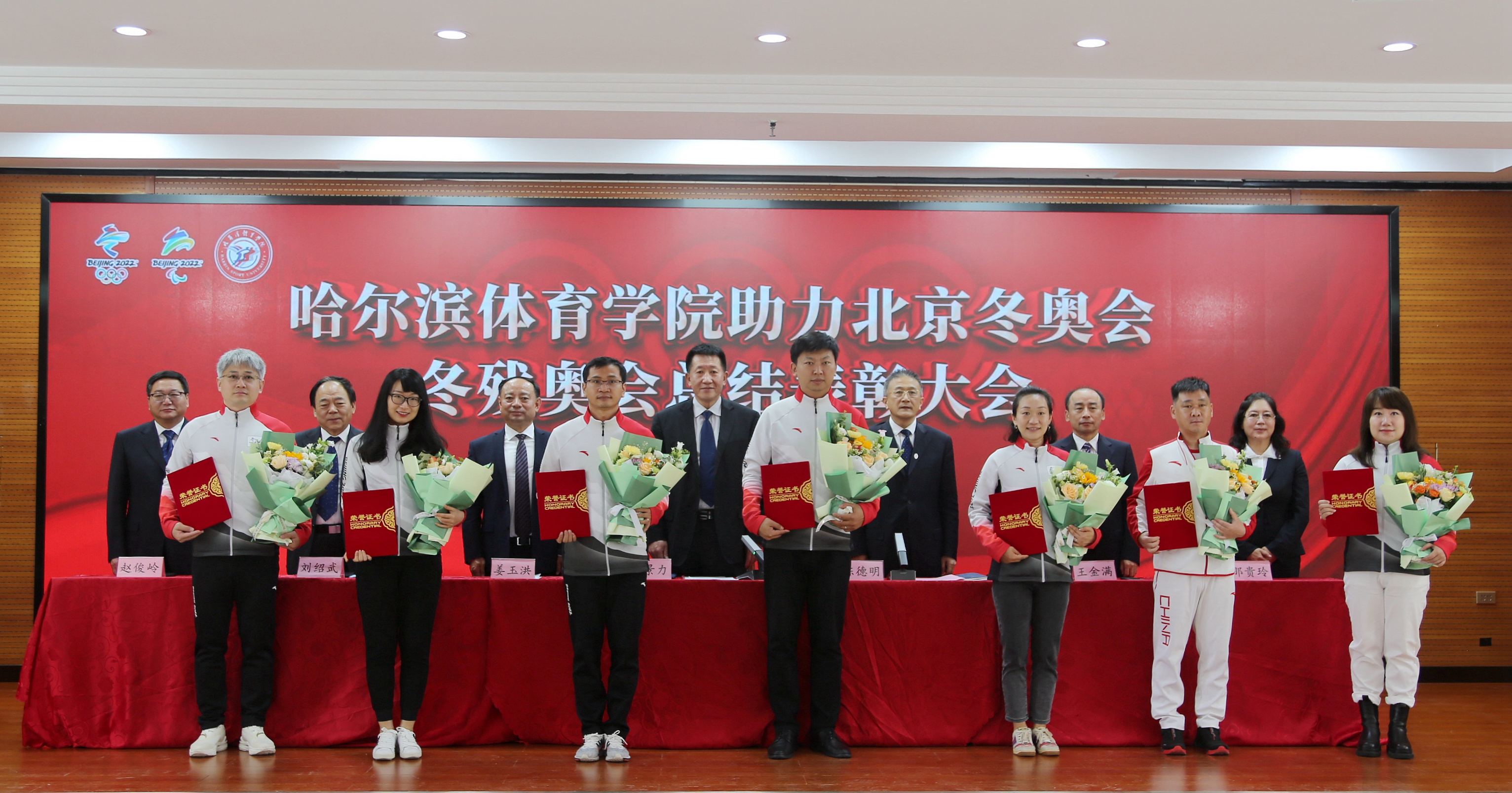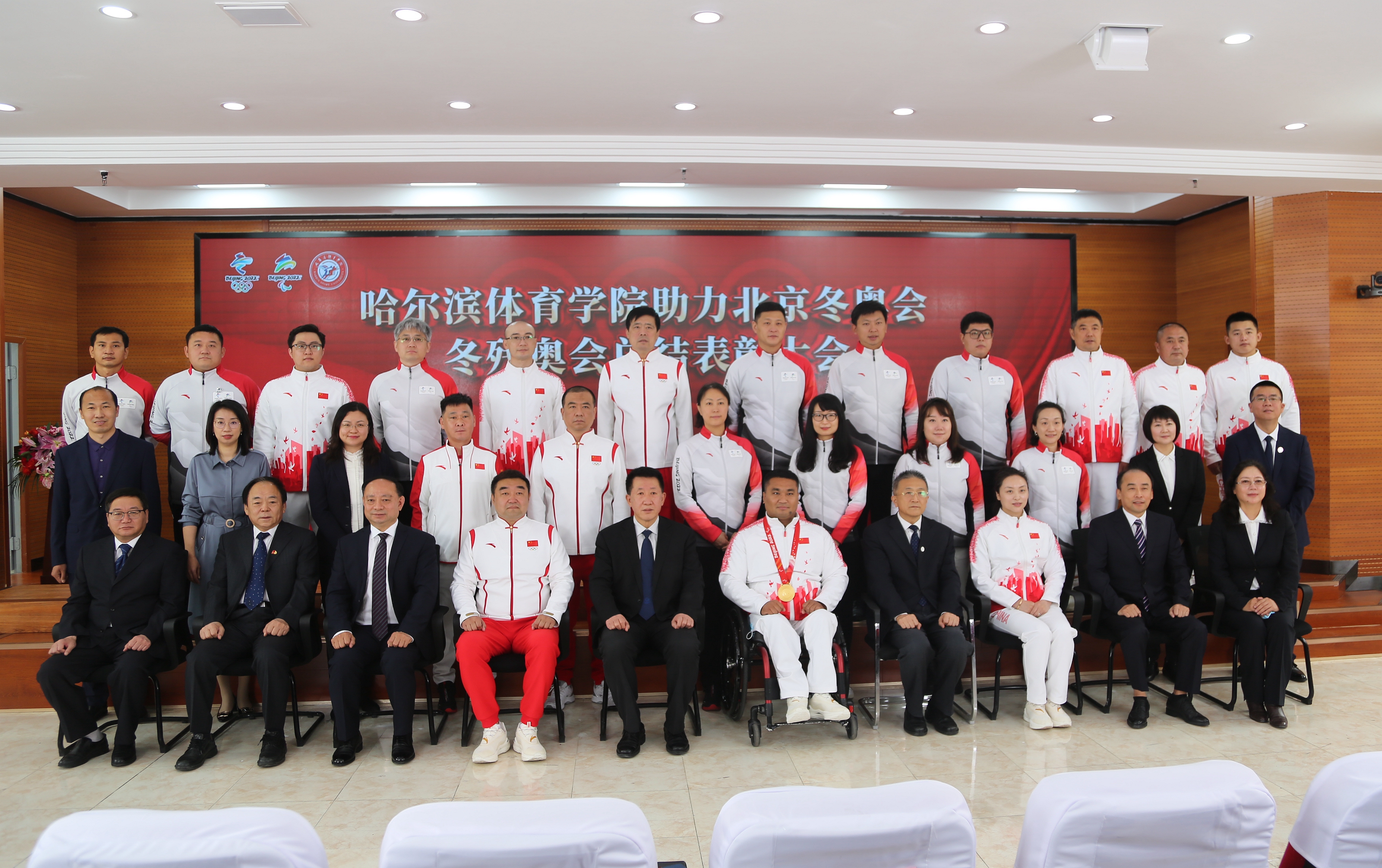 他指出,举办北京冬奥会、冬残奥会是以习近平同志为核心的党中央作出的重大决策,是我国重要历史节点的重大标志性活动。在习近平总书记亲自谋划、亲自部署和亲自推动下,我国秉承“绿色、共享、开放、廉洁”的办奥理念和“简约、安全、精彩”的办赛要求,在世纪疫情与百年变局交织叠加的艰难时刻,向世界奉献了简约、安全、精彩的北京冬奥会、冬残奥会,兑现了“两个奥运”同样精彩的庄严承诺,彰显了奥林匹克精神和中华体育精神。在北京冬奥会、冬残奥会筹办过程中,我校认真贯彻落实习近平总书记重要指示精神和省委、省政府“实现三个40%”的目标要求,把服务保障备战作为重大政治任务,坚持“北京冬奥需要什么、我们就支持什么,北京冬奥需要我们做什么、我们就做好什么”,做到了举全校之力支持、服务、奉献、参与冬奥。我校有96名师生助力服务冬奥,向党和国家交出了冬奥会3金2铜,冬残奥会12金6银10铜的优异答卷,人才贡献率居全国体育院校之首,成为唯一一所荣获“突出贡献集体”荣誉称号的高校,教练员朱德文被授予“北京冬奥会、冬残奥会突出贡献个人”称号。这些成绩的取得,全面彰显了具有66年办学历史的哈体院在人才培养、竞赛训练、科技助力、场馆保障等方面的精湛水平,充分证明了哈体院作为冰雪体育强校在冰雪体育研究和冰雪运动实践方面的雄厚实力。我们哈体人应该为此骄傲和自豪!