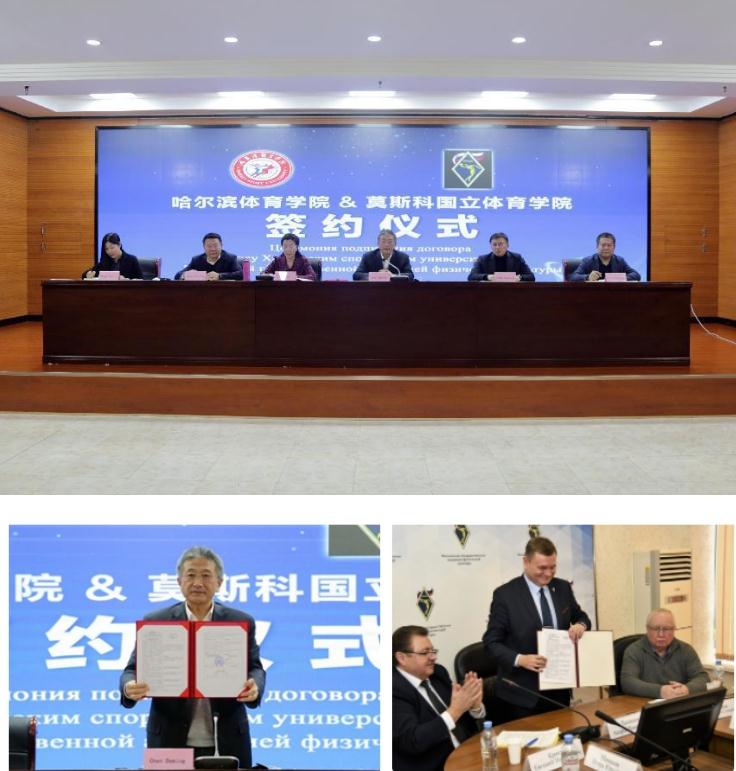 陈德明校长和安德烈·尼古拉耶维奇校长分别代表双方签署了《哈尔滨体育学院与莫斯科国立体育学院合作协议》。