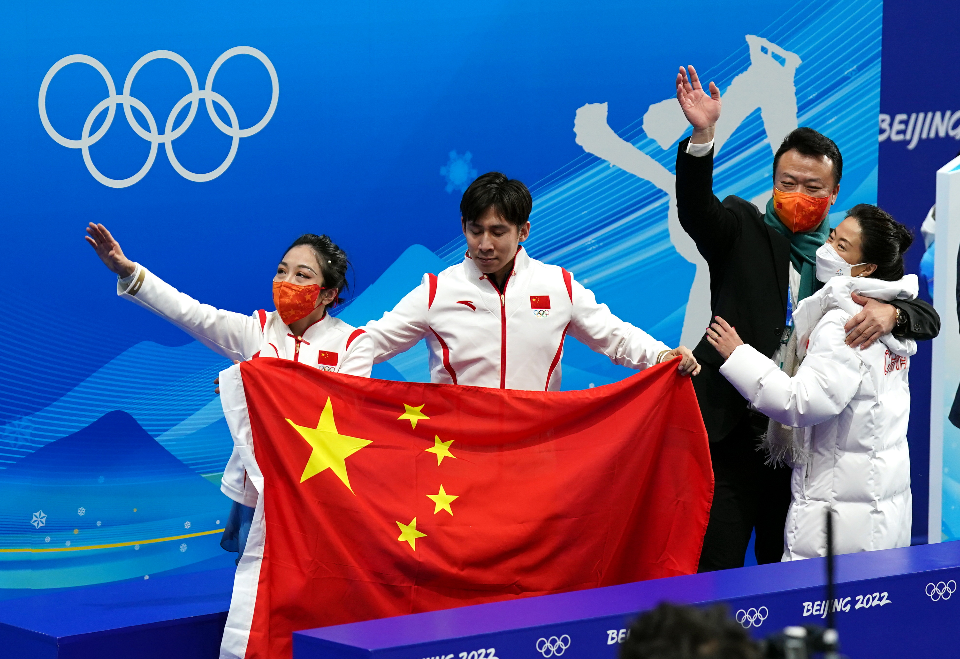 花样滑冰的传承,申雪赵宏博和隋文静韩聪一起庆祝胜利