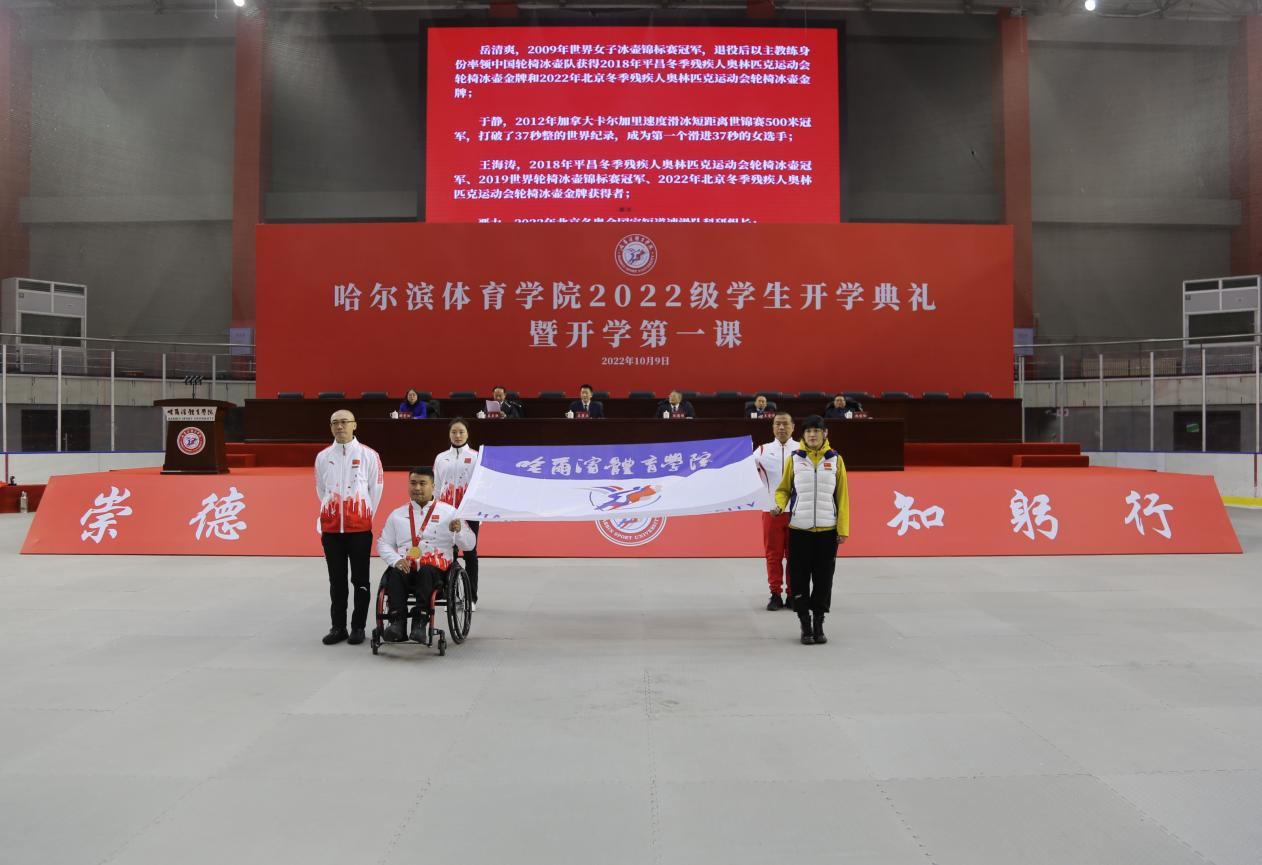 第三,秉承哈体至高荣耀,练就过硬真本领。自北京冬奥会成功举办以来,我校把服务、保障、备战冬奥等作为重大政治任务。在我校,有开局后连续四场失利,绝地反击,带领团队蝉联轮椅冰壶世界冠军的主教练岳清爽、有关键一掷锁定胜负的“关键先生”队长王海涛;有勤勤恳恳、甘于奉献的“幕后英雄”国家短道速滑队科研组长严力;有打破男子500米速滑奥运会记录的2014级校友高亭宇;有实现世界花样滑冰史上第一个双人滑全满贯的2008级校友韩聪和2016级校友隋文静;还有96名助力服务冬奥的师生,他们的身影出现在运动员、教练员、裁判员、技术官员、科研人员、管理人员的岗位上,他们为北京冬奥会实现“真正的无与伦比”的认可贡献了自己的力量。同学们,无论是冬奥会上为国争光的运动员、教练员,还是刻苦学习的学长学姐,榜样就在你们身边。今天的你们正值云程发轫、万里可期的青春韶华。期待你们在新征程上,做心怀“国之大者”的“志士”,以“北京冬奥精神”为引领、扛起“哈体至高荣耀”的大旗,以时不我待、奋勇争先的勇气,在人生赛道上奋力书写大学精彩华章!