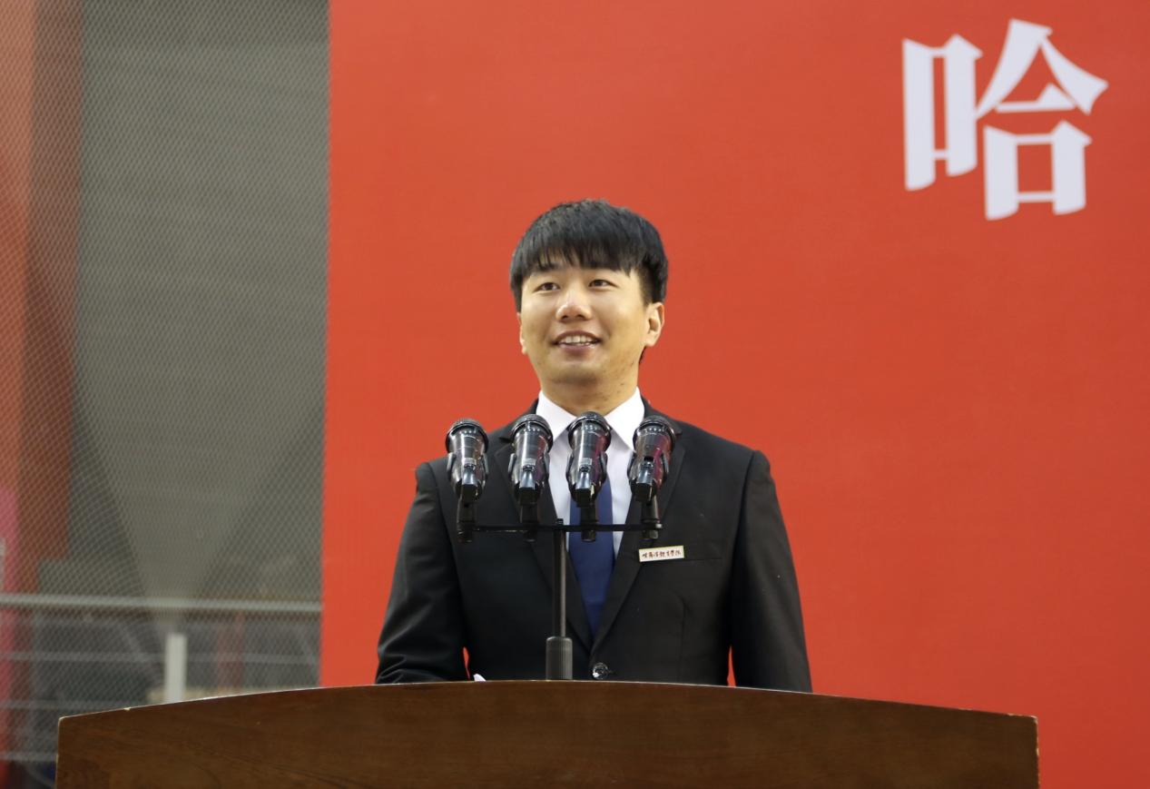 博士在校生代表、研究生院2021级博士生赵华鑫对2022级同学们说“今天,我们站在新的起点上,即将扬帆起航。作为新时代的哈体人,我们要不忘习近平总书记的殷切嘱咐,应将个人理想与国家前途命运紧密相连,锐意进取、刻苦钻研、自信自强,用敏锐的眼光观察社会,用清醒的头脑思考人生,用智慧的力量创造未来,争做具有家国情怀、理想远大、学业精深、脚踏实地、报效国家的新时代体育人才,以更饱满的精神面貌迎接党的二十大胜利召开!”