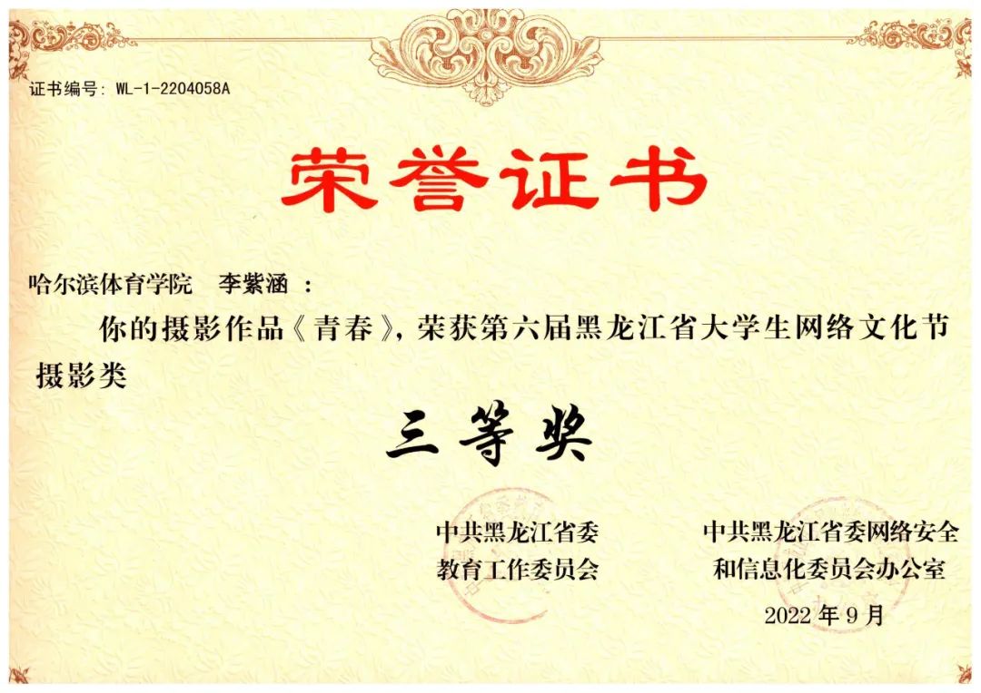 在“中共黑龙江省委教育工作委员会和中共黑龙江省网络安全和信息化委员会办公室联合举办的第六届黑龙江省大学生网络文化节”中,我校师生揽获8项等级奖: