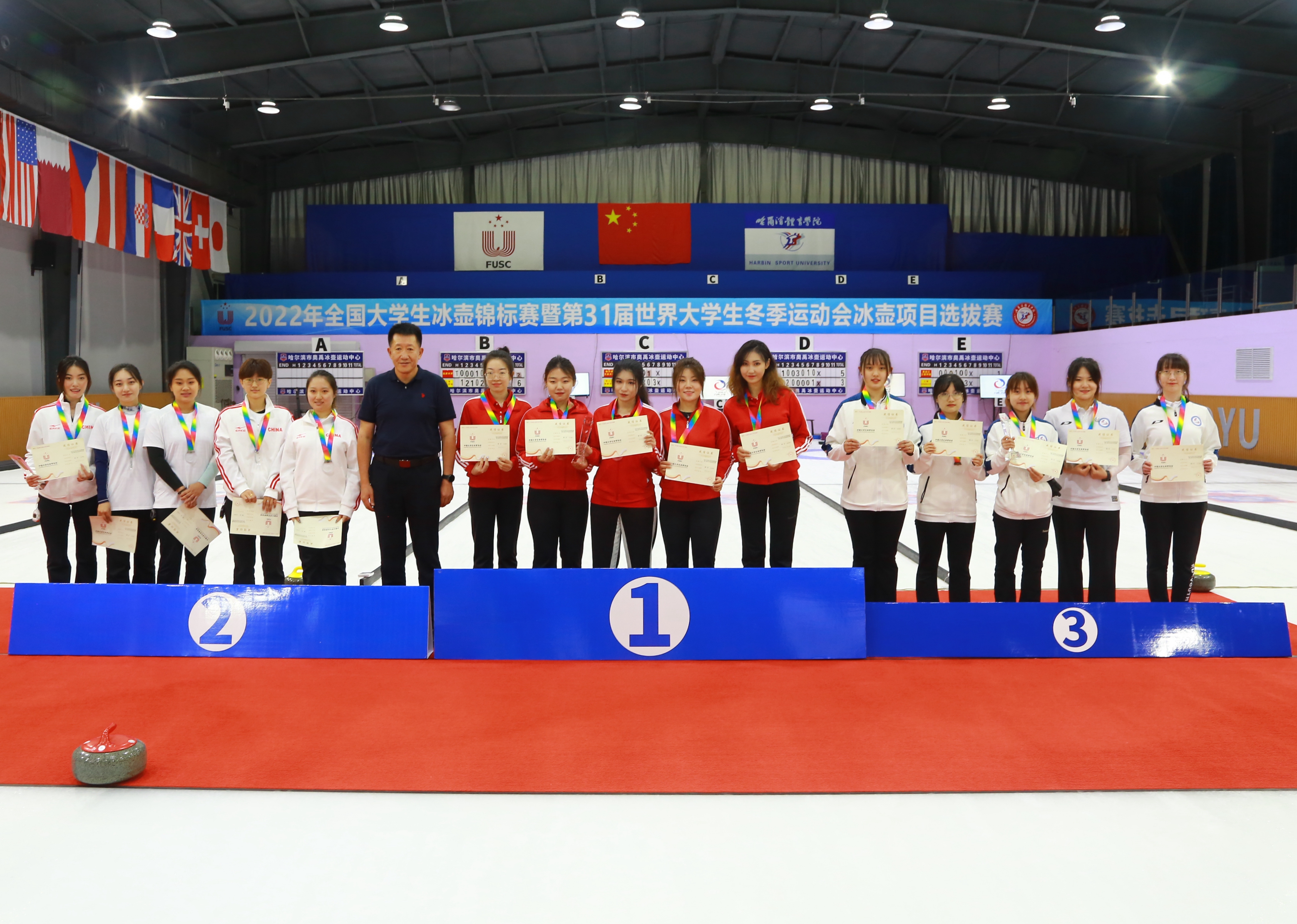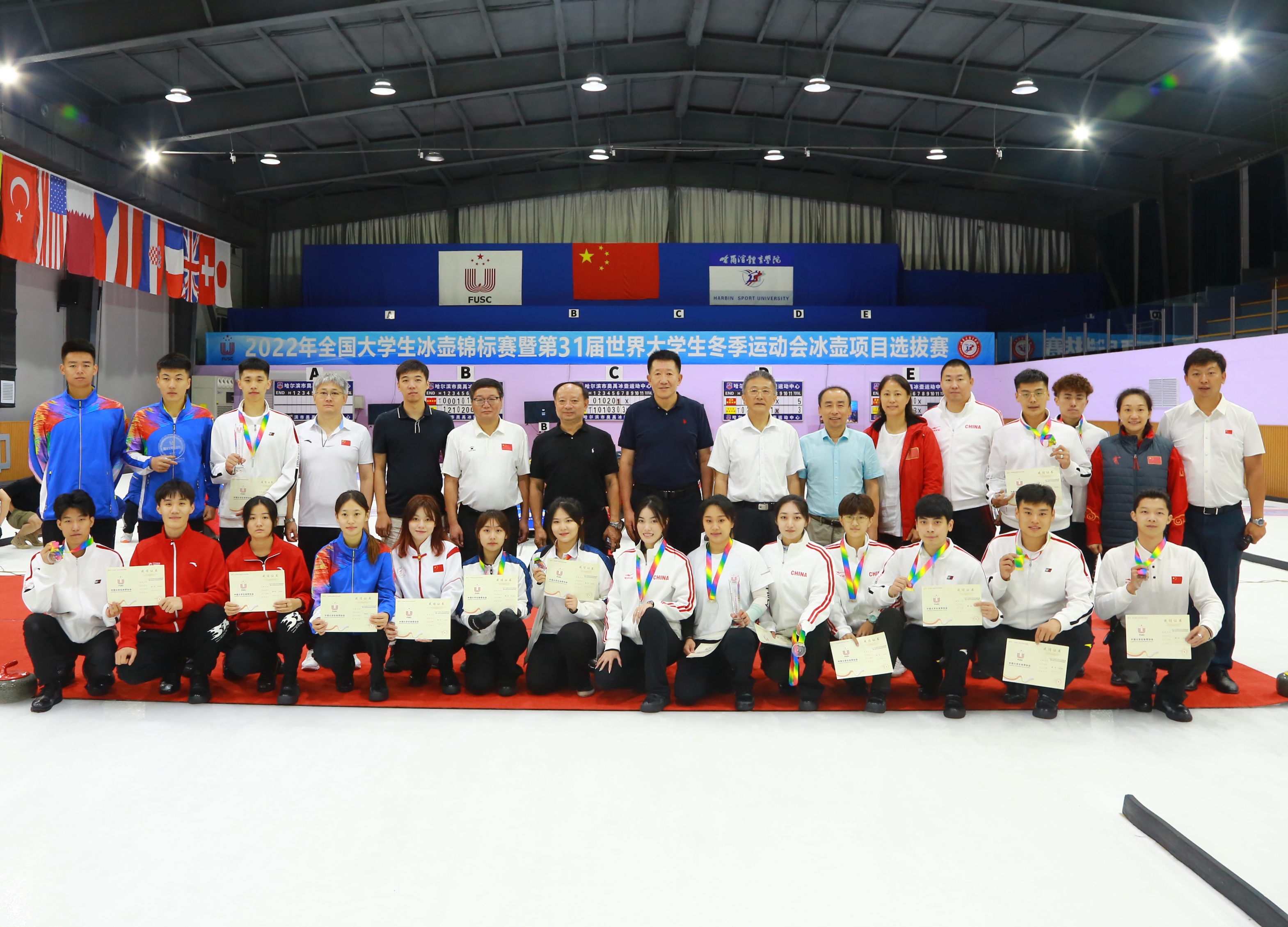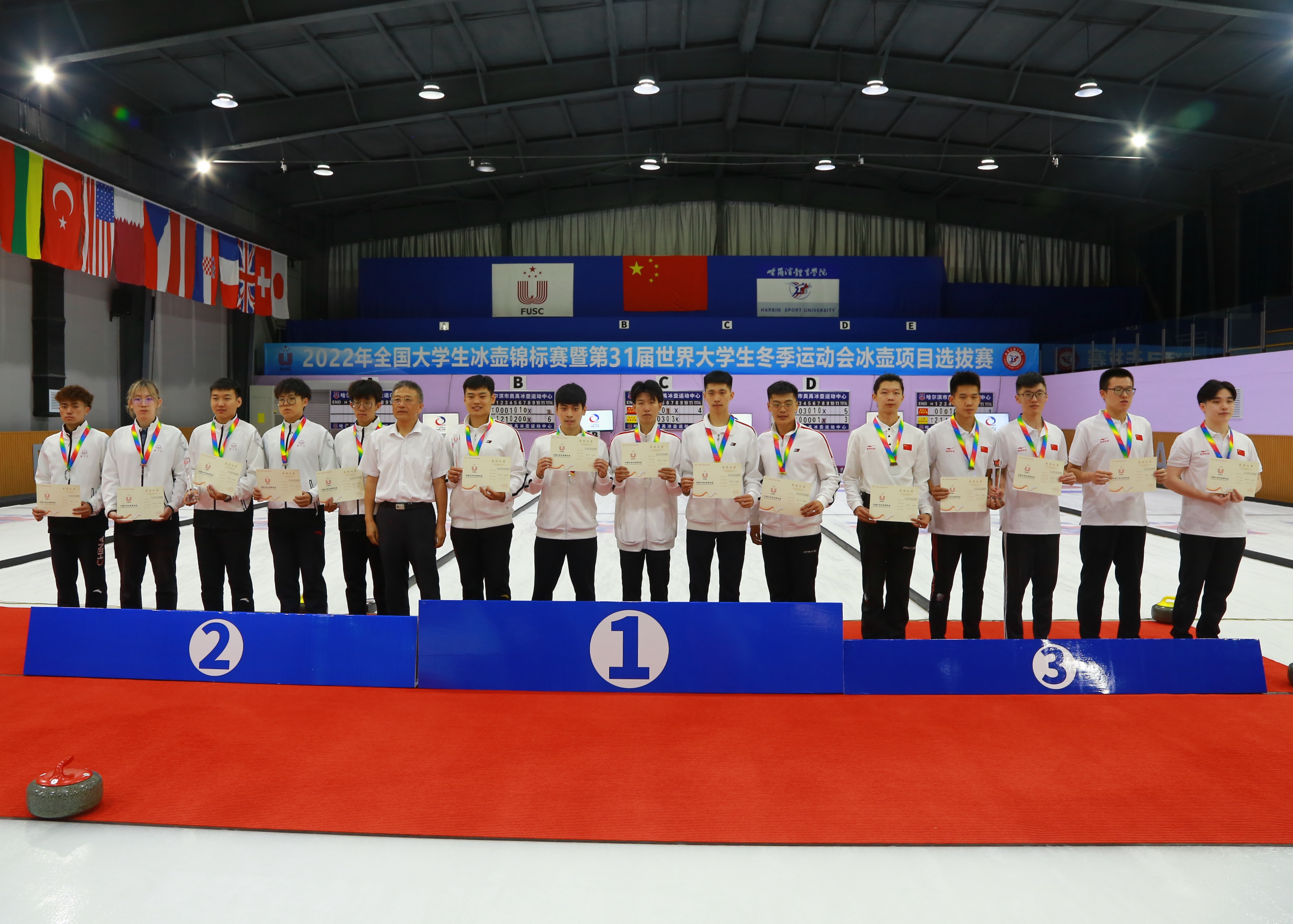 8月5日,由中国大学生体育协会主办,哈尔滨体育学院承办的2022年全国大学生冰壶锦标赛暨第31届世界大学生冬季运动会冰壶项目选拔赛胜利闭幕。本次赛事是2022年全国新冠疫情防控常态化下,中国大学生体育协会主办的首次线下冰雪体育赛事。有来自哈尔滨体育学院、北京大学、北京工业大学、北京体育学院、上海对外经贸大学、上海电机学院、天津体育学院、哈尔滨工业大学、东北林业大学、黑龙江科技大学、黑龙江大学、哈尔滨学院、哈尔滨科学技术职业学院、黑龙江工程学院等14所高校的23支队伍,146名师生参赛。