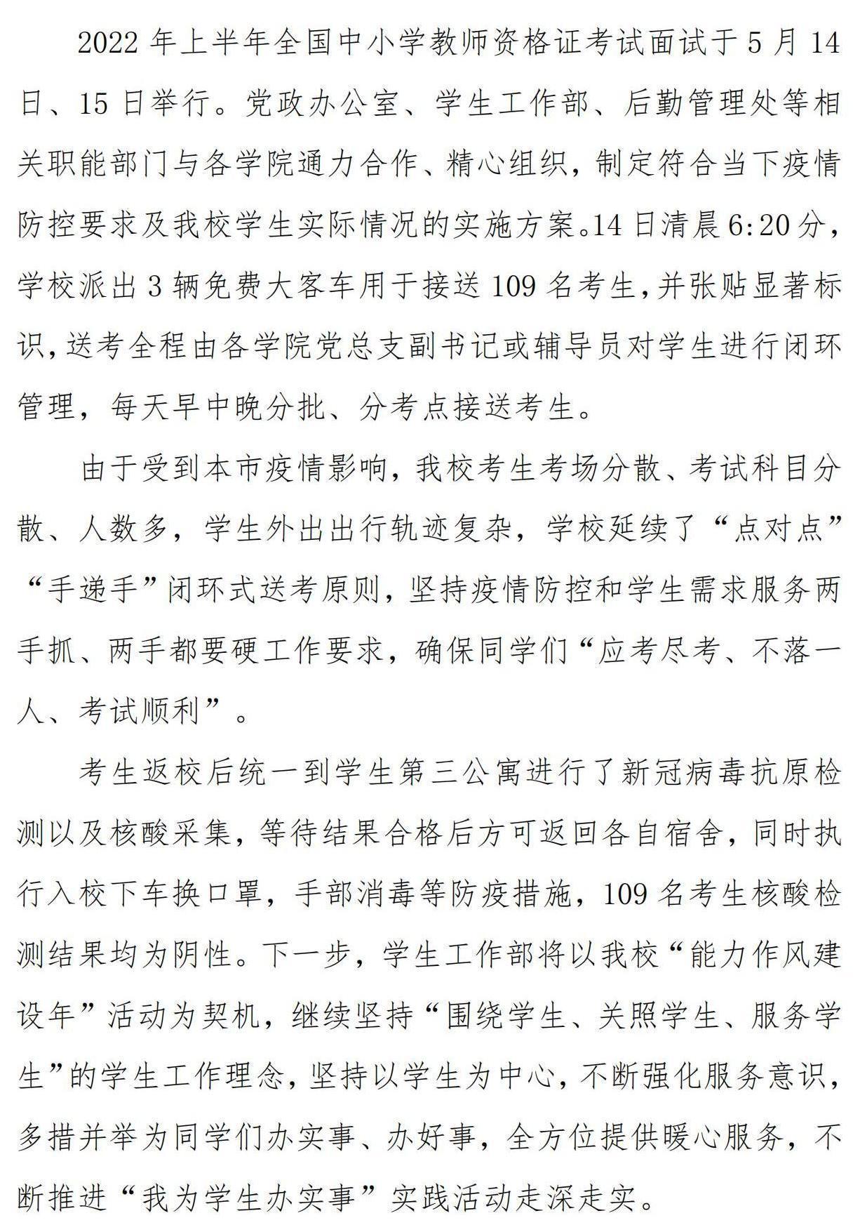 暖心为你 安全有序——我校圆满完成上半年第二次教资考试送考工作
