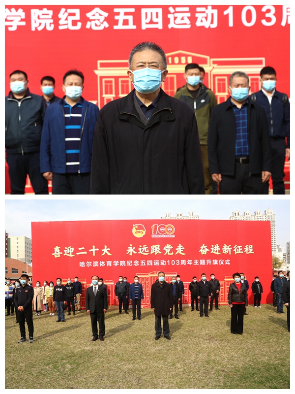为纪念五四运动103周年,弘扬“爱国、进步、民主、科学”的五四精神。进一步引导全校青年传承五四精神,庆祝中国共青团成立100周年。5月4日清晨,“喜迎二十大、永远跟党走、奋进新征程”哈尔滨体育学院纪念五四运动103周年主题升旗仪式在田径场隆重举行。党委副书记、校长陈德明、党委副书记姜玉洪,相关职能部门主要负责同志和各学院党总支书记、院长、副书记、全体辅导员,部分学生代表到现场参加了本次活动。同时,活动通过线上进行同步直播,共有近6000人观看了本次升旗仪式,仪式由校团委学生兼职副书记崔嘉源主持。