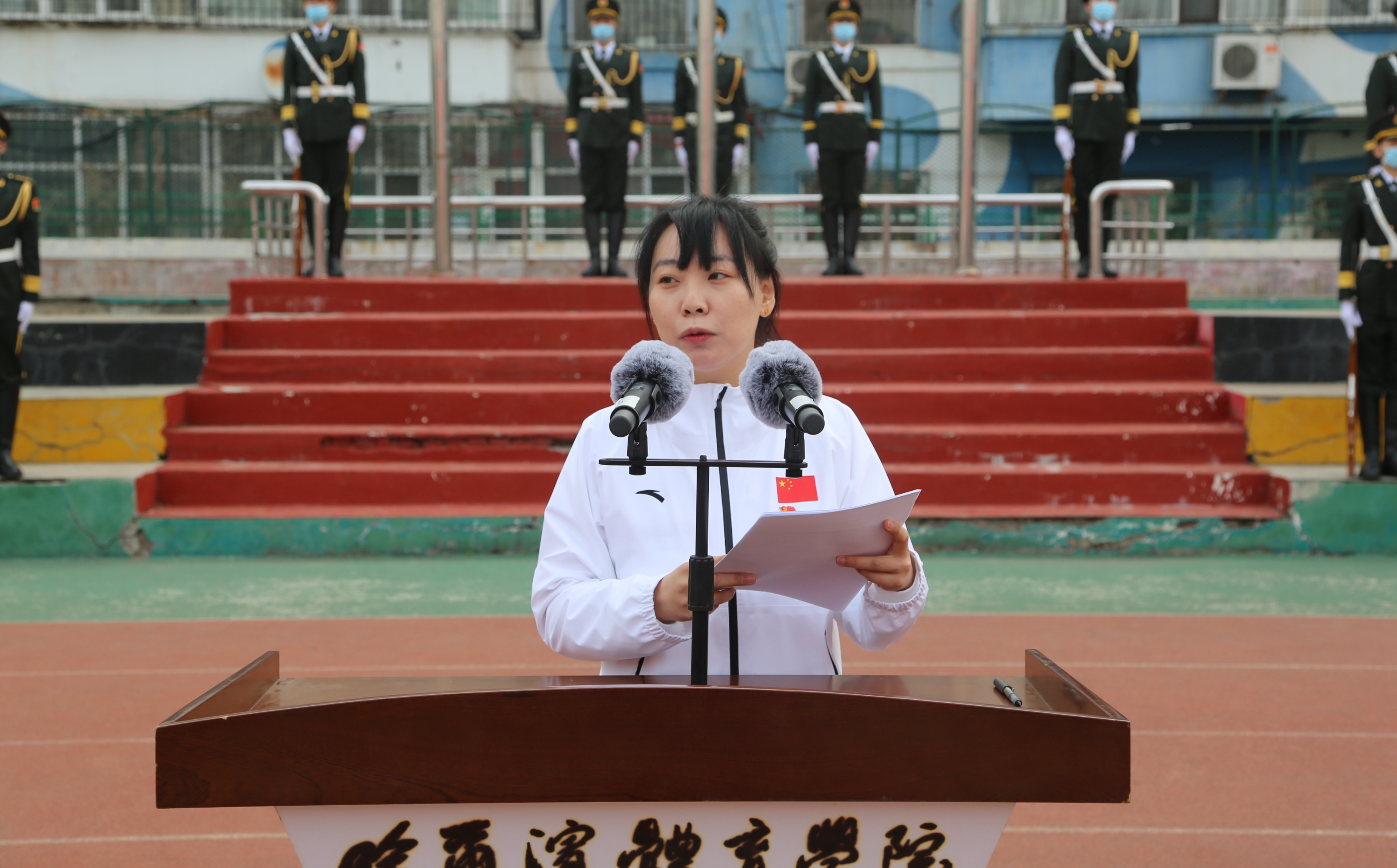 体育人文社会学院辅导员宋磊作为教师代表发言。她在发言中提到:希望所有哈体青年,珍惜韶华、不懈努力,自觉成为红色基因的传承者,听党话、跟党走的追随者,铸牢中华民族共同体意识的践行者,实现中华民族伟大复兴路上的奋斗者,以青春之我、奋斗之我,赓续百年荣光,奏响奋进下一个百年目标的青春之歌,以实际行动迎接党的二十大胜利召开。