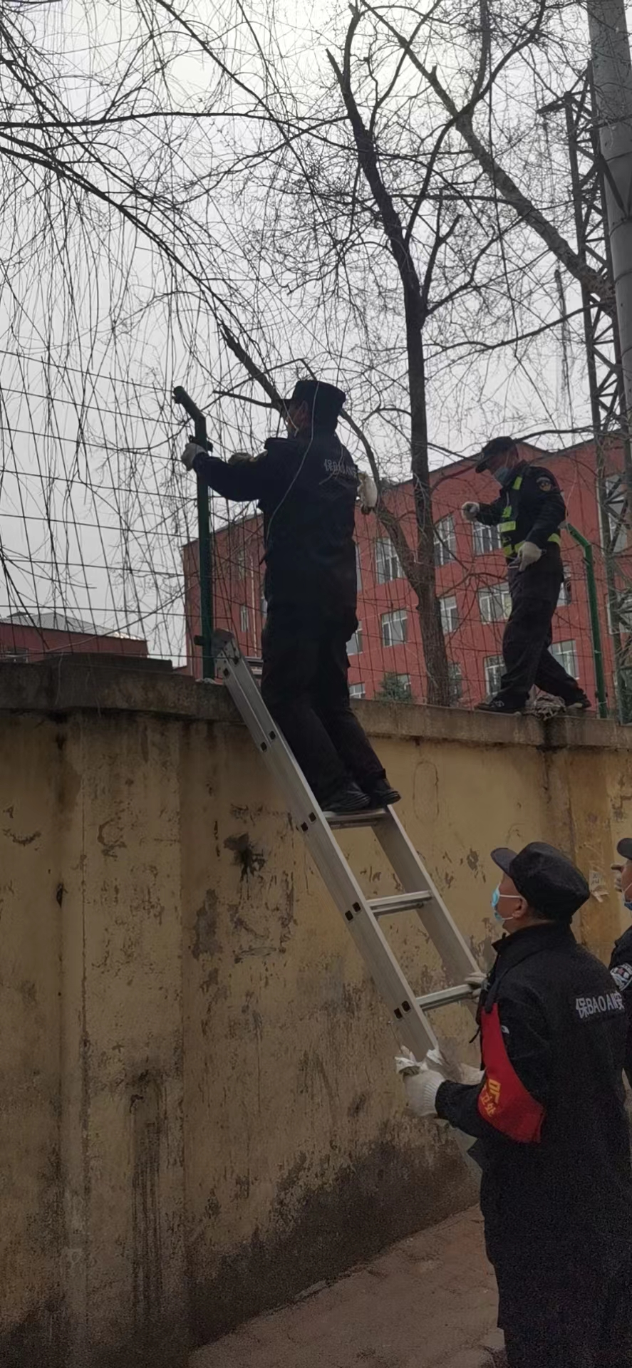 修复围栏,防止人员翻越。学生未返校前,保卫处开始检查维修学校围墙,对容易翻越处进行加固维修,学生返校后不断检查及时维修,防止人员翻越。