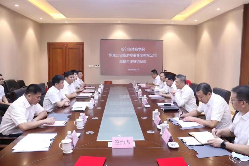 9月7日,哈尔滨体育学院党委副书记、校长陈德明,党委委员、副校长周霄闻等一行赴黑龙江省旅游投资集团举行战略合作签约仪式。旅投集团副总经理、董事郭本正,副总经理魏志伟代表集团出席了签约仪式。旅投集团战略发展部部长郭子扬,综合办公室副主任王栋东,黑龙江省中青旅党支部书记、董事长刘立繁,党支部副书记王明哲,哈尔滨体育学院党政办公室主任解长福,第二教学区主任黄绥平,国际交流合作处处长刘景祥,国有资产管理处处长宁宇参加了签约仪式。
