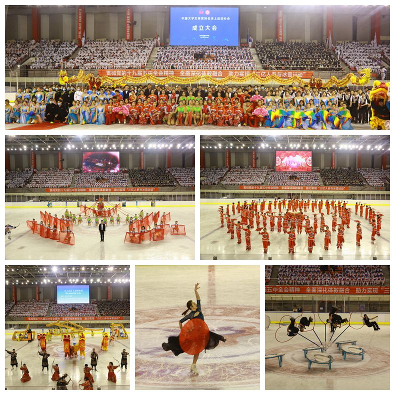 与服务社会相结合,践行使命担当。充分发挥体育特色,将体育与艺术、文化、教育紧密融合,在学思践悟中担当作为。坚持体育精神与文化塑造相结合、特色项目与体质健康相结合,组织600余名师生参演中国大学生体育协会冰上运动分会成立大会暨中国大学生冰壶锦标赛开幕仪式7个节目,为服务龙江冰雪事业、全民健身运动、北京2022年冬奥会助力;组织师生助演省总工会“永远跟党走、建功新龙江”颁奖典礼,充分展现了学校师生的体育艺术风貌,用行动践行了使命担当。坚持最高标准、最严要求,聚焦考务组织、服务保障、疫情防控三条主线,顺利完成了2021年全国体育单招篮球东北区体育专项考试和 2021 年黑龙江省普通高校招生体育类专业术科考试任务,为来自全国30个省份的7000余名考生提供了服务保障。