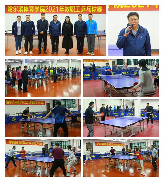 “哈尔滨体育学院2021年教职工乒乓球赛开幕”赵主席浑厚有力的声音拉开了本赛季首场团体赛的序幕。