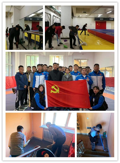 金秋十月,在隆重迎接中华人民共和国成立70周年之际,在学校全面进行“不忘初心、牢记使命”主题教育开展过程中,武术学院教工党支部和学生党支部全体党员开展了“不忘初心、劳动光荣”主题党日志愿活动,于2019年10月11日利用中午休息时间,分别打扫了高层地下散打馆和拳击馆,清理了卫生死角,让教学场馆焕然一新,营造了清爽、干净的教学环境。在劳动过程中大家不嫌脏、不怕累,一致认识到党员义务劳动,既是一种示范,更是“践行入党誓词,不忘入党初心”的学习实践。