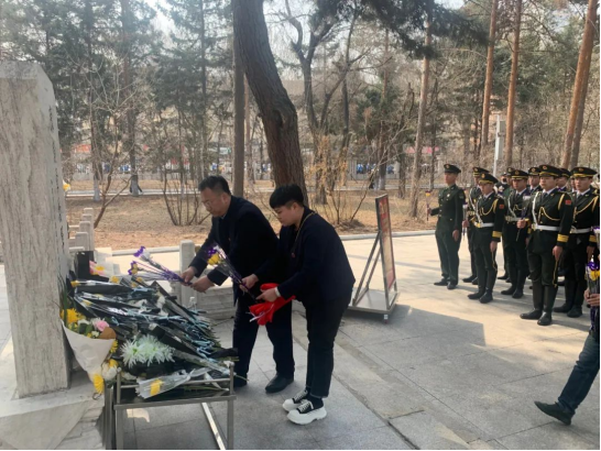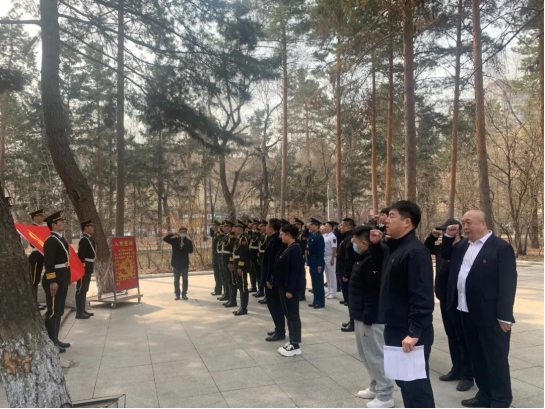 机关八支部在哈尔滨烈士陵园举行“缅怀先烈 致敬英雄”主题党日活动。“为什么战旗美如画,英雄的鲜血染红了它……”八支部党员和学校26名学生退伍士兵代表,表达对先烈的崇敬之心、传承之志。