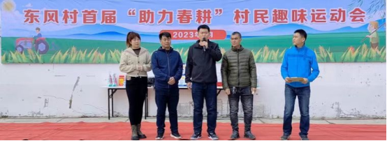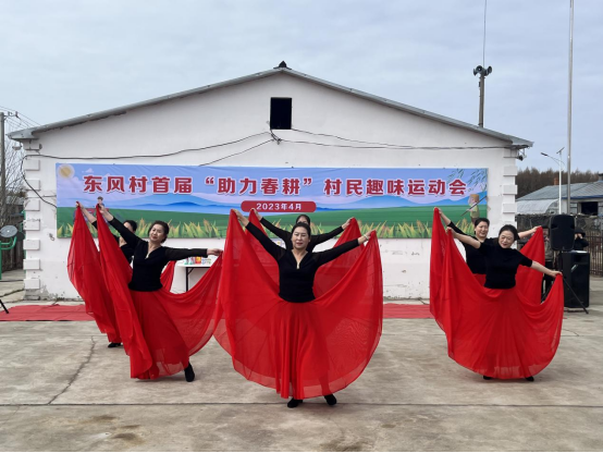 近日,由哈尔滨体育学院驻村工作队组织举办的东风村首届“助力春耕”村民趣味运动会在抚远市东风村文化广场喜庆开场。群众自编自演的开场歌舞《我和我的祖国》、《绒花》将会场气氛完美烘托,演员们精神饱满,舞姿优美,引得村民爆发阵阵热烈掌声。