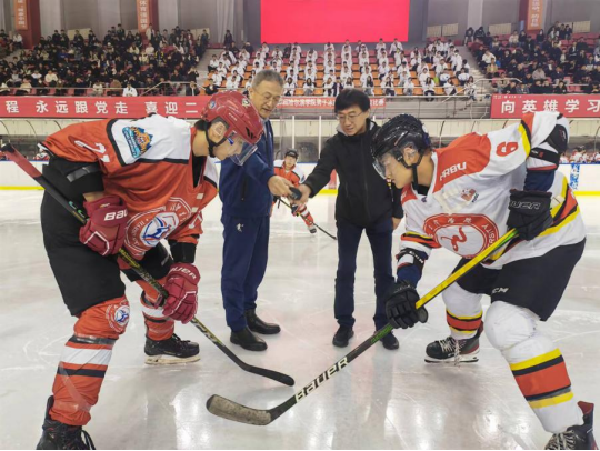 邀请赛在雄壮的国歌声中拉开帷幕,学校党委副书记、校长陈德明,哈尔滨学院体育学院院长李大威共同为比赛开球。本次比赛竞赛组织与裁判工作均由校冰球协会的师生完成。他们是冰球教研室教师国际裁判刘昊天、刘露和研究生院王英杰等同学组成的裁判团队;冬奥学院辅导员玉苏甫、刘宣池和金鑫带领的学生团队;以及人文学院教师谢沃特带领的新闻学生团队。经大家的共同努力,为比赛提供各项技术支撑,保证了比赛的圆满成功!