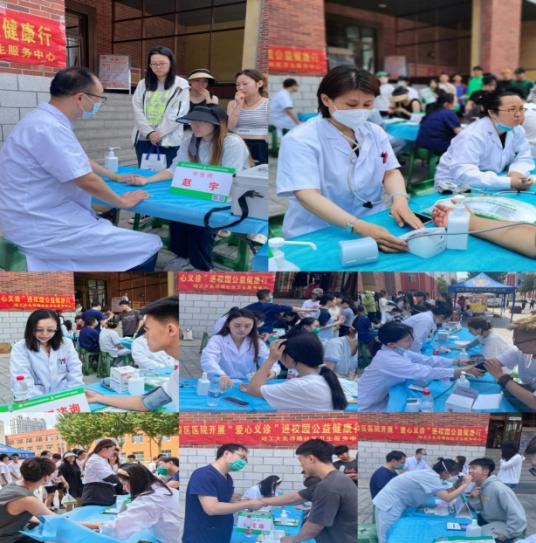为深入开展学习贯彻习近平新时代中国特色社会主义思想主题教育,后勤管理处卫生所积极践行“我为群众办实事”活动,坚持深入实际、深入师生,为学生排忧解难。2023年6月13日诚邀哈工大二校区先锋路社区医院在我校学生食堂门前开展多学科大型“校园义诊”活动,为前来问诊的师生提供“一对一”解答与指导,对健康隐患问题给出合理建议以及相关的治疗方案。本次活动受到我校师生热烈欢迎,共计为300余名师生提供了健康咨询服务。