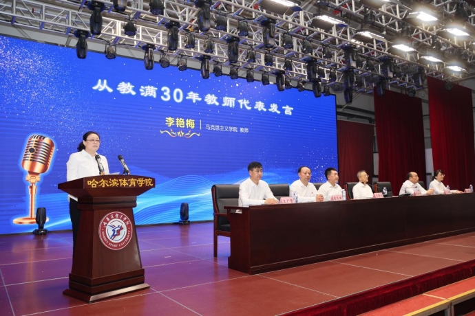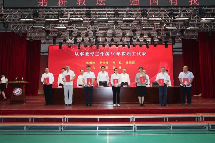 会上,党委副书记姜玉洪、副校长王金满、副校长王广贵、副校长齐景嘉分别通报和宣读表彰决定。随后,校领导为从事教育工作满30周年教师,获得校级以上先进集体和先进个人颁发荣誉证书和鲜花。