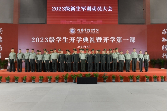 9月17日上午,哈尔滨体育学院2023学生军训动员大会在滑冰馆举行。武警哈尔滨支队执勤二大队副大队长王祥东,学校党委副书记、军训旅政委姜玉洪,副校长、军训旅旅长王广贵,副校长、军训旅旅长齐景嘉出席了会议。教务处处长、军训旅参谋长姜春平,学工部部长、军训旅副参谋长张海滨,武装部部长、军训旅副参谋长王永,后勤管理处处长、军训旅副参谋长李焕新,相关职能部门负责人和各二级学院党总支书记、副书记及2023级学生辅导员参加了会议。会议由王广贵主持。