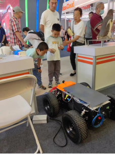科普展观众参观我校参展的“冰壶机器人”
