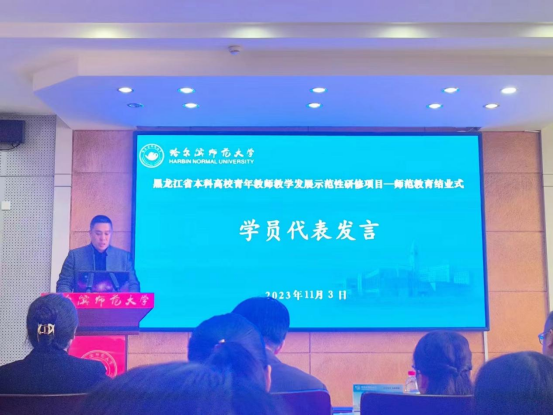 本次研修是由省教育厅组织,依托哈工大、哈工程等7所高校开展的新工科、新医科、新文科等6个领域的一项加快高校青年教师教学发展的长期支持项目。研修时间为10月9日至11月3日,内容涵盖教育教学专题辅导、教学技能训练、名师教学观摩、基层跟岗锻炼、教学合作研讨、个人教学展示等,全省共270位优秀青年教师参加。