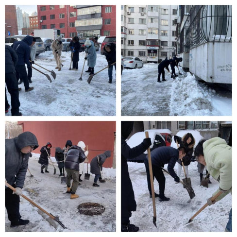 在学校后勤管理处的大力支持下,机关党员干部“以雪为令”组织清冰雪工作有序进行,志愿者们分成两组,将住宅楼99楼和87楼合围区域道路、98楼和艺园楼合围区域道路路面冰雪进行了清扫。虽然寒风凌冽、寒气逼人,但大家依旧热情高涨,丝毫没有退却之意,大家不畏严寒,不叫苦累,手持铲雪工具,配合默契,热情高涨,以机关党员干部的实际行动践行初心使命,成为冰天雪地里的一道亮丽风景线。