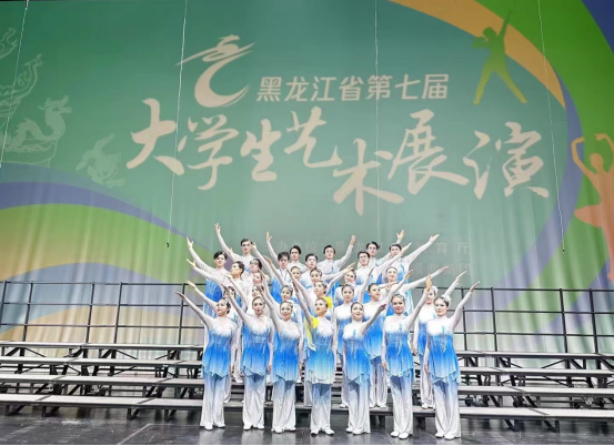 本届展演活动紧紧围绕“厚植家国情怀,涵养进取品格”主题,坚持立德树人、面向全体、弘扬中国精神原则,展现龙江当代大学生奋力筑梦的价值追求和向真、向善、向美、向上的精神风貌。本赛事收到61所高校1357件作品提交至省大艺展组委会进行评审,按照教育部《关于举办全国第七届大学生艺术展演活动的通知》(教体艺函[2023]13号)部署要求,经高校遴选推荐,专家综合评审,我校原创舞蹈作品《屹冰傲雪俏凌春》最终脱颖而出,荣获集体舞蹈乙组(专业组)一等奖。