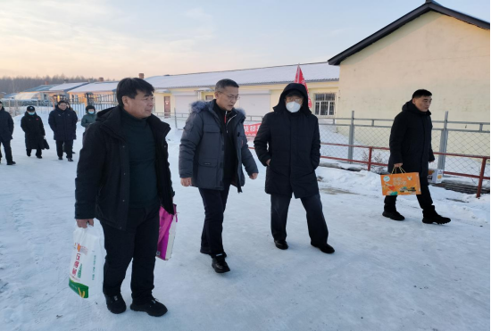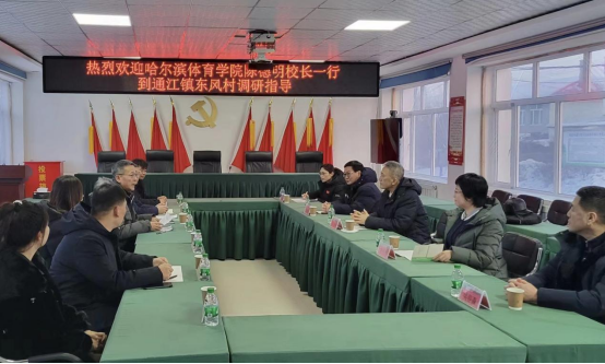 2023年12月24日至25日,哈尔滨体育学院党委副书记、校长陈德明、校纪委书记李柃燕、校工会主席赵俊岭以及黑龙江冰雪产业研究院院长张贵海、校工会副主席吴春森、校办公室王婷婷一行到抚远市调研驻村帮扶工作,看望驻村工作队、脱贫户和老党员。