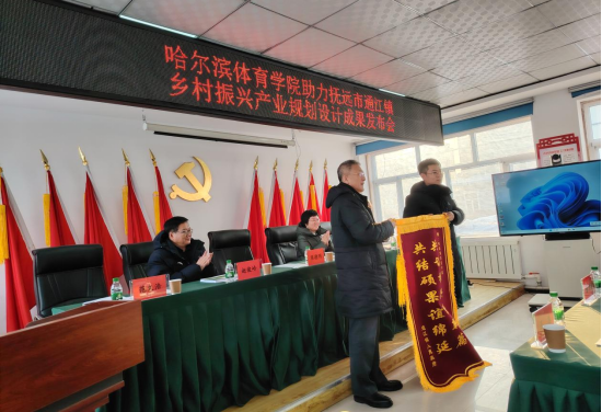 12月25日上午,陈校长一行出席哈尔滨体育学院助力抚远市通江镇乡村振兴产业规划设计成果发布仪式。抚远市人大常委会副主任、总工会主席袁冬,通江镇党委副书记、镇长范文浩,镇副科级以上机关干部,哈体院驻村工作队成员以及各村两委参加了发布仪式。陈校长在讲话中表示,通江镇乡村振兴产业规划设计成果的发布,是哈尔滨体育学院与抚远市深化市校合作协议的有效举措,是学校与通江镇在乡村振兴共享共建模式下的又一合作硕果。哈尔滨体育学院仍将持续落实帮扶单位责任,努力拓展帮扶方式,尤其在发展冰雪经济上力争谋划出更多与抚远发展定位高度契合的优质项目,助力抚远市现代化建设不断迈出新步伐、再上新台阶。