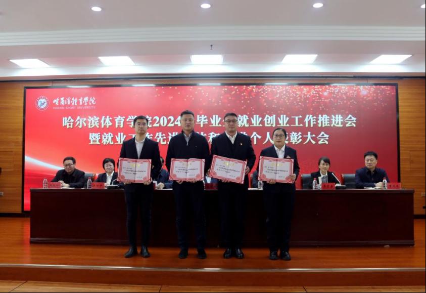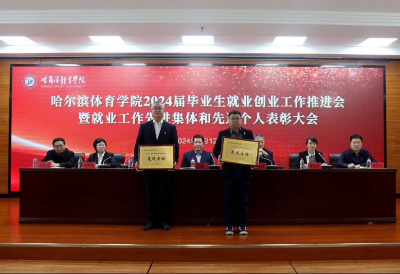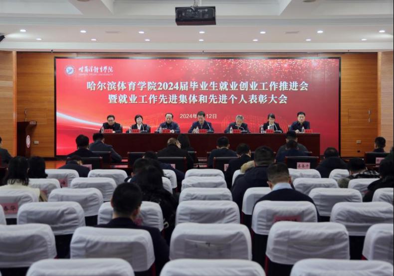 为深入贯彻落实党中央、国务院决策部署,全面落实教育部和人力资源和社会保障部2024届全国普通高校毕业生就业创业工作视频会议精神,黑龙江省普通高校2024届毕业生就业创业工作会议精神,总结2023届毕业生就业工作,安排部署2024届毕业生就业工作,1月12日,我校在崇德楼三楼学术报告厅召开哈尔滨体育学院2024届毕业生就业创业工作推进会议暨就业工作先进集体和先进个人表彰大会。校领导兰景力、陈德明、姜玉洪、齐景嘉、李柃燕、曹连众、赵俊岭,党政部门、教学教辅部门副处级以上干部、全体辅导员、学工部、团委、招生就业处全体人员参加会议。党委副书记姜玉洪主持会议。