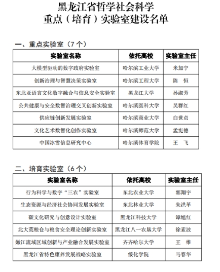1月12日,中共黑龙江省委宣传部、黑龙江省教育厅下发通知,公布了首批黑龙江省哲学社会科学重点(培育)实验室名单。经专家评审,省委宣传部、省教育厅确定我校“中国冰雪信息研究中心”入选首批七家黑龙江省哲学社会科学重点实验室之一。这是我校学科建设的又一代表性成果,同时也标志着我校在省部级科研平台建设方面取得新突破。
