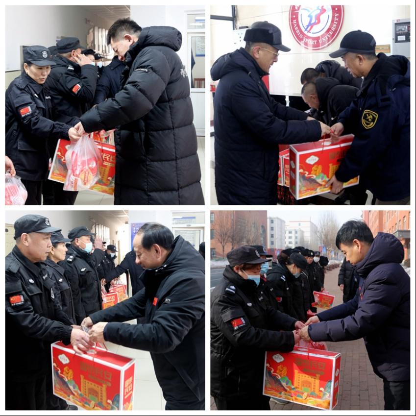 学校领导先后走访慰问处级干部值班室、变电所、滑冰馆制冷机房、学生公寓、学生食堂、各楼宇值班室、尚志校区等岗位的值班人员,详细了解假期期间后勤水电、校园安全、寝室管理、帽儿山滑雪场等工作运转情况。每到一处,学校领导与在岗职工亲切交流,对他们辛勤工作和努力付出表达诚挚敬意和衷心感谢,并送上慰问品和新春祝福,让大家深切感受到温暖而浓厚的节日氛围。