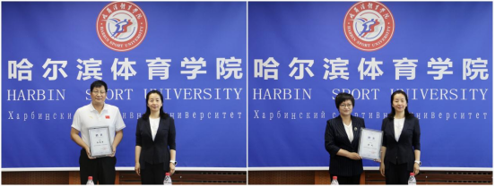 建华区委副书记曹颖为哈体院冰雪产业经济、体育教育、竞赛训练领域专家人才张贵海、董欣、刘春华颁发客座教授聘书。