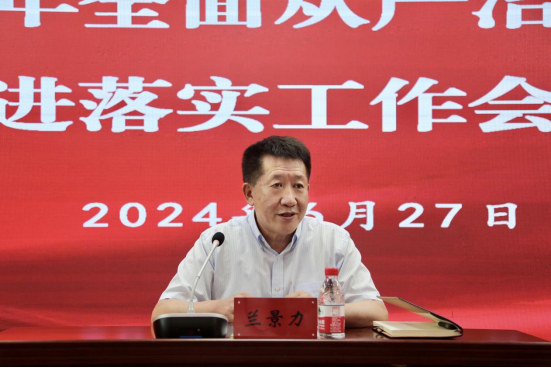 兰景力对各二级党组织2024年上半年全面从严治党重点任务推进工作给予肯定,并根据推进工作中存在的问题,从五个方面提出了工作要求。一要在思想上深刻认识,坚持党中央集中统一领导是最高政治原则,每名党员干部都要见微知著、防微杜渐,把严的基调、严的措施、严的氛围长期坚持下去,把党的伟大自我革命进行到底。二要保持高压态势,持续转变作风,一方面以专项整治为抓手,深入推动党风校风学风建设,坚持标本兼治、综合施策;另一方面聚焦重点领域和关键环节,坚持抓早抓小、紧盯不放,防止“小毛病”演变成“大问题”。三要落实主体责任,层层推动落实,有效落实好党组织主责、书记首责、班子成员“一岗双责”,以“永远在路上”“永远吹冲锋号”的紧迫感和使命感扛牢全面从严治党的政治责任。四要不断完善制度,坚持制度上全贯通,把制度建设要求体现到全面从严治党全过程、各方面、各层级,切实提升制度的执行力,更好地转化为治理效能。五要深化党纪学习教育,不断增强干事创业积极性,严格规范自身言行,牢记不该做什么,明确必须做什么,在干事创业中体现新担当新作为。