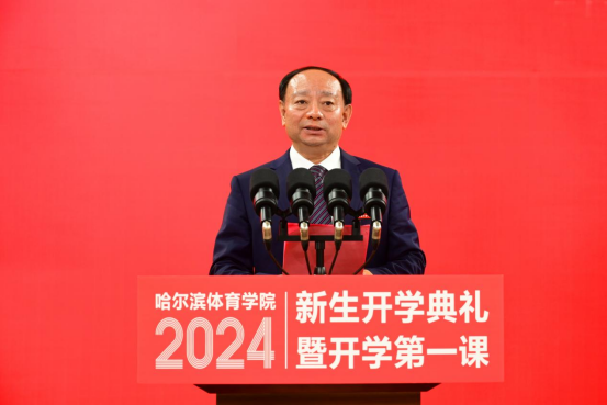 姜玉洪首先向1695名新同学的到来表示诚挚的欢迎,感谢家长们对哈体的信任,感谢老师们为学生成长所付出的心血。他解读了哈体校训“崇德尚勇,求知躬行”的内涵,强调这是学校在近70年办学历史中凝聚的精神特质,更是全体学子在未来求知路上应时刻铭记于心、毕生践行的座右铭。