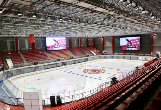 为了更好的完成教学、训练、比赛工作任务,馆内备有浇冰车三台、冰场修边机两台、冰壶专用修冰机两台,均满足一用一备,且皆为进口主流先进设备并派专人操作。冰球项目对标奥运会标准,可以在8分钟内完成比赛节间休息的冰面修复工作。