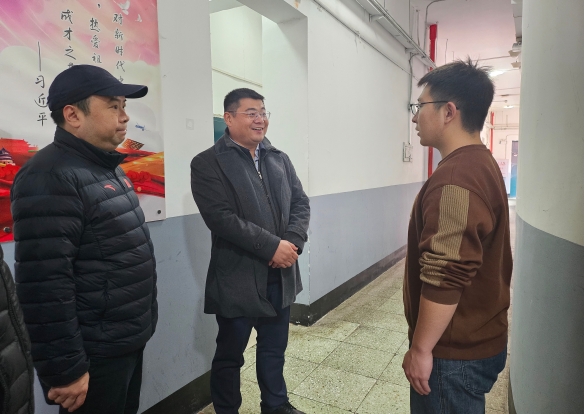 调研过程中,王春雷关切地询问学生学习生活中是否遇到困难,谈及他们的家庭、学习生活和毕业规划等情况,勉励同学们要自理、自立、自强,争做自律、担当、向上的新时代大学生,共同营造一个安全舒适的校园环境。