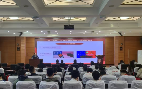 宣讲会现场气氛热烈,与会师生专注聆听。会后师生们纷纷表示,党的二十届三中全会开启了新时代新征程推进中国式现代化的时代新篇,具有重大里程碑意义,要以高度的思想自觉、政治自觉、行动自觉贯彻落实党的二十届三中全会精神,以更加坚定的信心、更加饱满的热情、更加昂扬的斗志,投身到进一步全面深化改革的伟大实践中,脚踏实地,积极进取,为推进中国式现代化建设添砖加瓦,与时代同频共振!