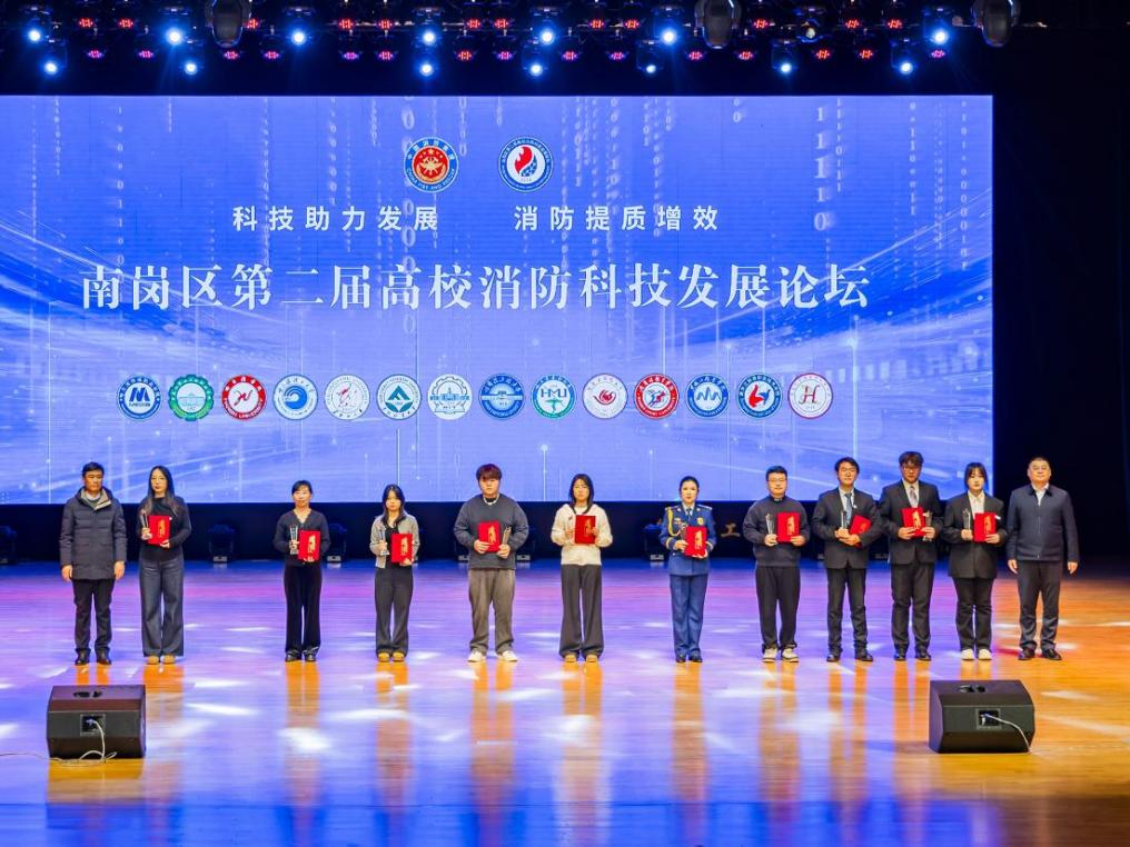 2024年12月16日上午,哈尔滨市南岗区第二届高校消防科技发展论坛在哈尔滨工程大学隆重举行。本次论坛由南岗区消防救援局主办,以“科技助力发展、消防提质增效”为主题,分为理工类和文科艺术类进行评选,旨在推动消防领域的科技进步与创新发展。我校党委副书记王春雷出席大会,并为优秀作品选手颁奖。