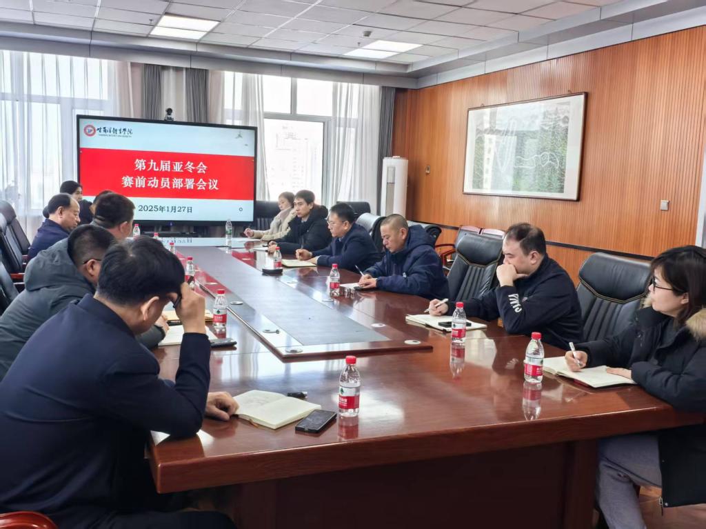 为持续提升赛会服务保障能力,全力冲刺做好第九届亚冬会女子冰球比赛筹办工作,1月27日,学校召开第九届亚冬会赛前动员部署会议。党委书记兰景力、校长姜玉洪、党委副书记王春雷、副校长王广贵、南岗区委政法委书记宋殿荣、南岗区人大常委会副主任张丹,以及我校相关职能部门负责人参加会议。