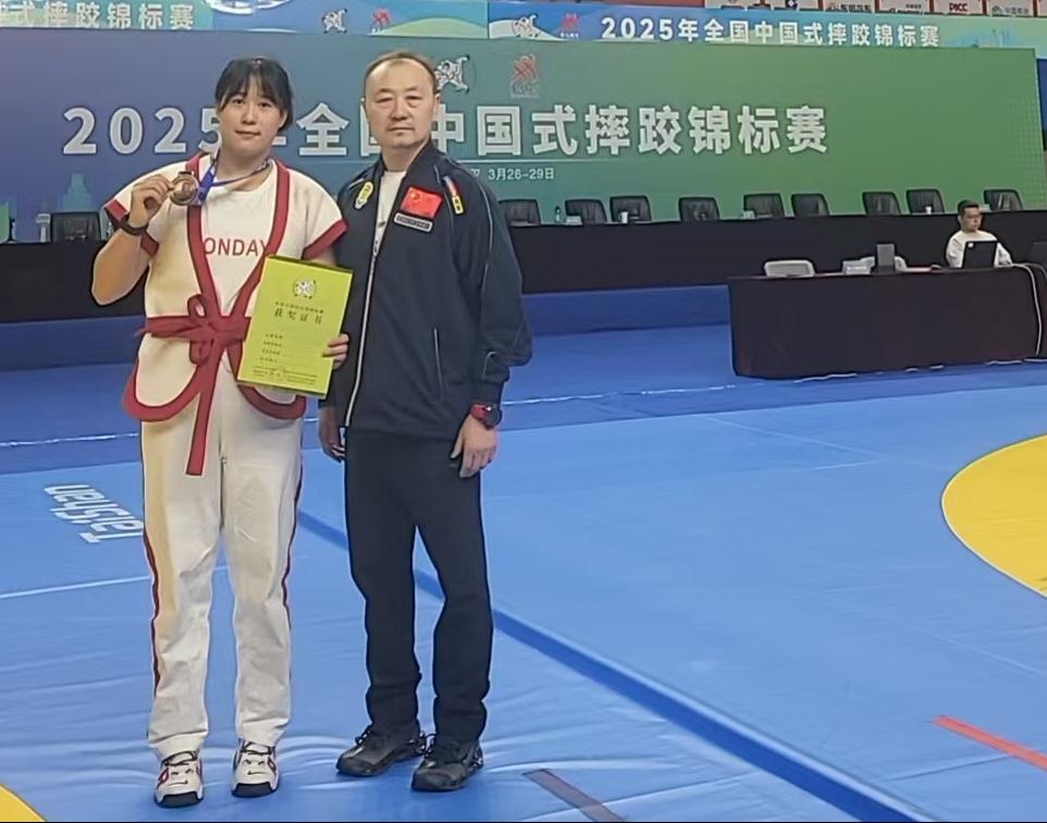 我校高度重视此次赛事,由民族传统体育学院宫照麟老师担任教练,2021级学生高宇飞作为运动员参赛。比赛中高宇飞充分发挥自身技术优势,一路过关斩将,最终荣获女子75公斤级铜牌,为学校争得了荣誉。
