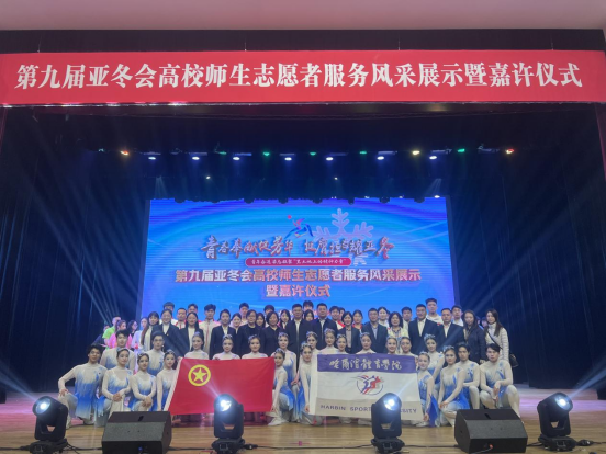 4月9日,由省委教育工委、省教育厅主办的“青春奉献绽芳华 挺膺担当耀亚冬”第九届亚冬会高校师生志愿者服务风采展示暨嘉许仪式在黑龙江大学举行,我校党委副书记王春雷、宣传统战部部长于晓阳、校团委书记赵荣荣及50余名志愿者师生代表参加活动。