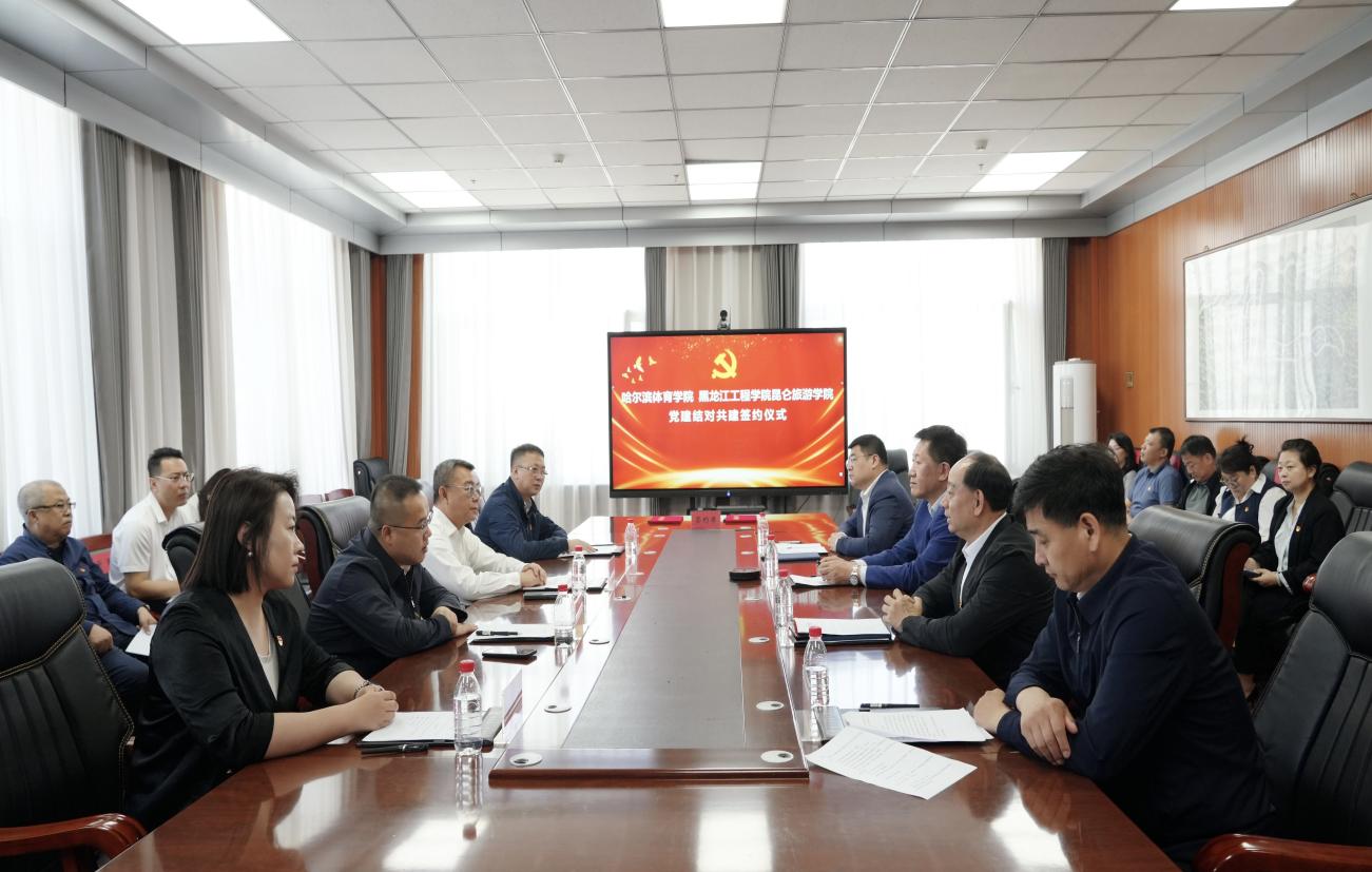 会上,党委副书记、校长姜玉洪对黑龙江工程学院昆仑旅游学院一行的到来表示热烈欢迎,对两校党建结对共建这一举措表示高度赞同并结合我校的办学特色、办学成果、党建工作思路举措等方面,分享了党建工作特色做法。他指出,本次两校党建结对共建协议的签署,既是落实上级要求的具体行动,也是携手共进共促两校在冰雪运动与冰雪文旅等方面互融互创的良好契机,我校将与黑龙江工程学院昆仑旅游学院进一步深化交流互鉴、增进优势互补,建立常态化沟通对接机制,全力推动两校组织联建、队伍帮带、育人协同、载体同创、资源共享走深走实,携手为加快教育强省建设、服务龙江地方经济发展作出更大的贡献。