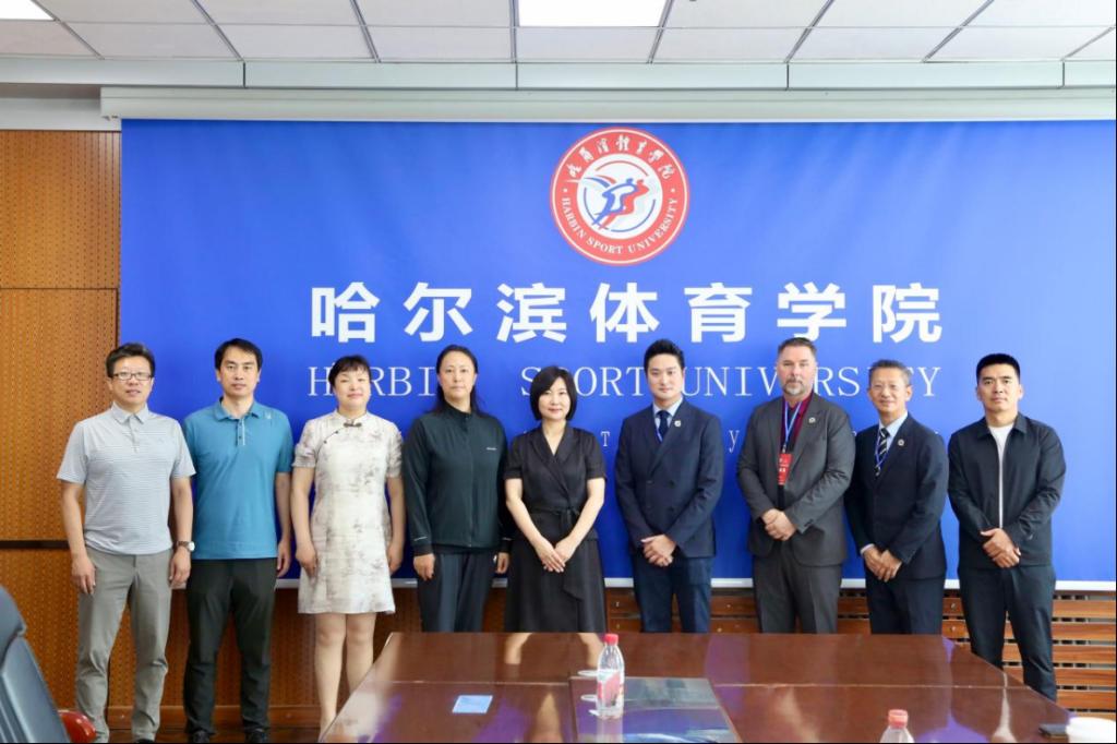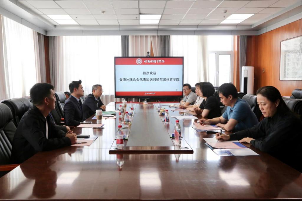 2025年8月5日下午,香港冰球总会主席陈恩永、领队伍家健、男子队主教练Michael Beharrell一行访问哈尔滨体育学院,哈尔滨名将体育发展有限公司总经理赵树峰陪同访问。哈尔滨体育学院党委副书记贾妮燕在崇德楼会议室会见代表团,学校相关部门负责人参加座谈。