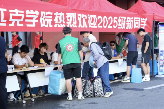 从晨光微熹到暮色四合,迎新专属车队始终穿梭在各站点与校园之间,只为让带着行李与憧憬的新生和家长,在奔波中少一分疲惫、多一分安心,稳稳抵达这方即将承载青春梦想的校园。校园里的每一处布置,更藏着满满的心意:校门口“欢迎新同学” 的立体展板格外醒目,各学院报到点的学长学姐早已整装等候、微笑引导,专人值守的行李寄存处免去 “拎包奔波” 的烦恼,宿舍楼下的彩色指引牌清晰标注每一条路线…… 从踏入校门到入住宿舍,每一个环节都经过精心打磨,确保报到流程的高效、便捷与暖心。
