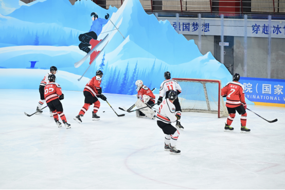 第二幕“冰雪铸魂 时代担当”,由我校教师张晨和赵云朋主讲,以“时代的回答——王海涛篇”为主题,通过真实感人的叙事,生动诠释了轮椅冰壶世界冠军王海涛自强不息、为国争光的奋斗故事,诠释了个人奋斗与国家发展同频共振的时代强音。正在备战米兰冬残奥会的王海涛通过视频发出“将个人梦想融入时代洪流”的号召。我校男子冰球队与平房区青少年冰球队的激烈对抗表演《冰场逐梦》,以竞技之美彰显拼搏精神。