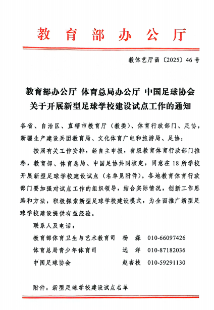 此次试点工作旨在探索新时代足球青训与学校教育深度融合的创新路径,为推动足球后备人才培养体系改革积累经验。经学校自主申报、省级教育体育行政部门推荐,并经教育部、国家体育总局、中国足协共同核定,最终在全国范围内遴选18所院校开展首批试点。我校凭借深厚的体育教育底蕴、完善的训练设施以及长期在足球项目上形成的特色培养模式脱颖而出,成功跻身建设试点单位。