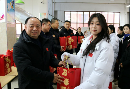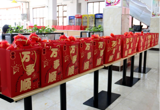 活动现场,校领导为全体185名参演师生逐一发放新春慰问福袋,福袋内精心配备春联、护手霜、新年礼糖、马年生肖挂件等暖心好物,每一份物资都饱含着学校对师生们辛勤付出的诚挚感谢与浓浓新春情意。