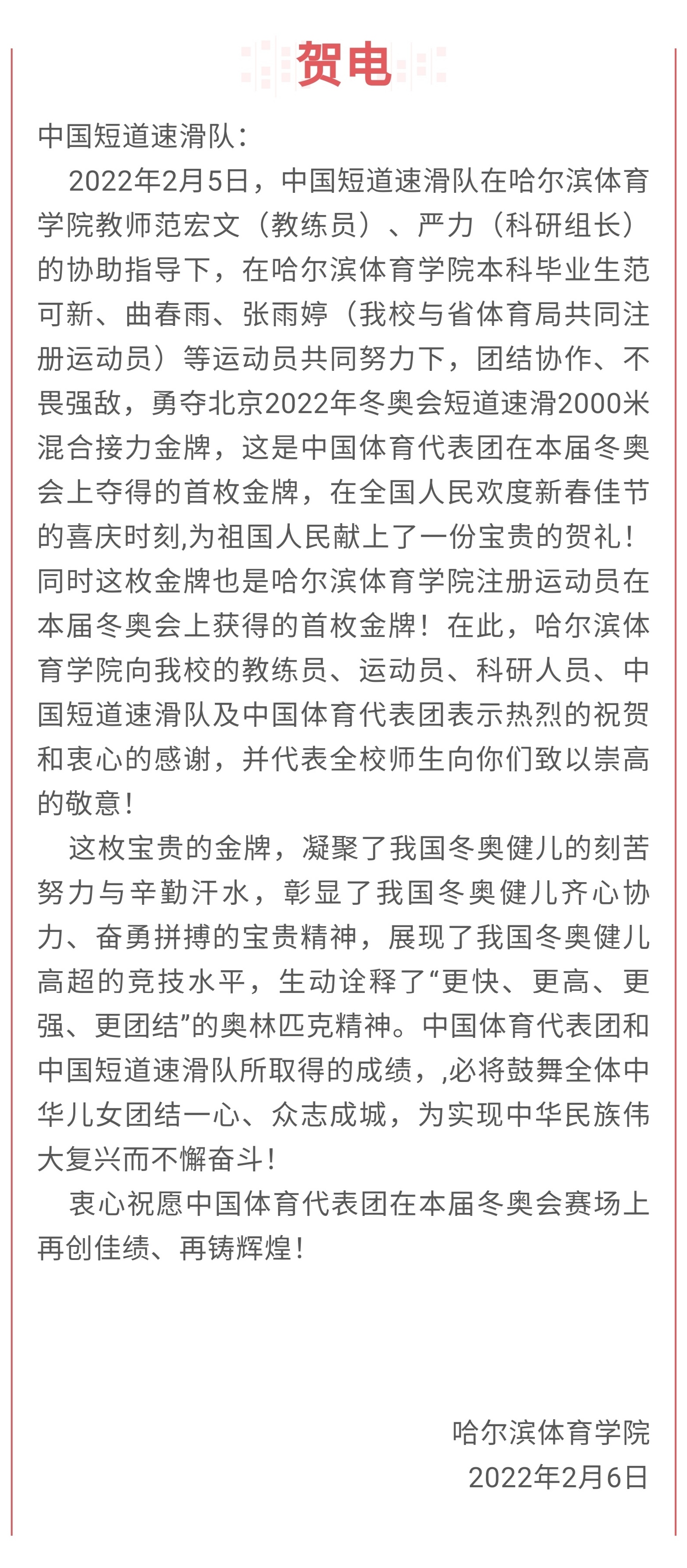 贺电!