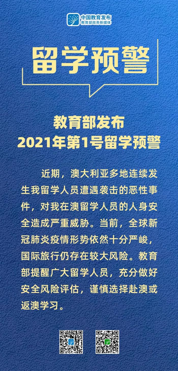 教育部发布2021年第1号留学预警:当前谨慎选择赴澳或返澳学习