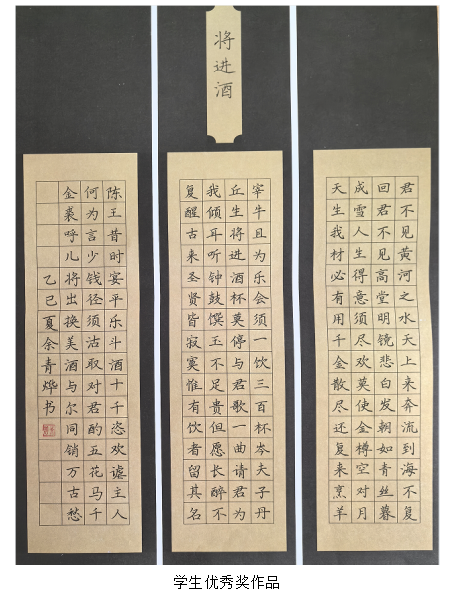 据悉,本届大赛参赛规模超过两千万人次。根据赛事规则,经层层选拔,共有547万余件作品进入初赛,最终评选出获奖作品10290件,其中“笔墨中国”汉字书写大赛获奖作品4981件。我校共有7部作品经省级遴选,被推荐参加全国总决赛。